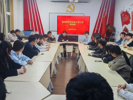 为进一步提升学生分会工作人员的履职能力,推动新学期学生工作有序开展,3月25日,基础部在理化楼三层党员活动室召开学生分会工作人员培训会。基础部辅导员武云飞开展培训指导,全体学生分会工作人员参加培训。