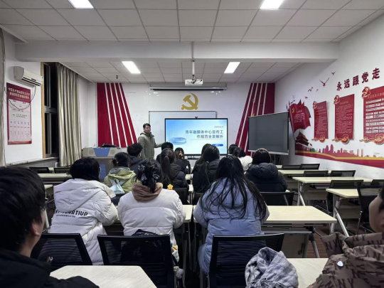 为进一步规范基础部学生宣传工作流程,提升青年融媒体中心工作人员的业务能力与责任意识,夯实部门宣传思想阵地建设,12月4日晚,基础部在理化楼党员活动室举办学生分会青年融媒体中心宣传工作培训会。分团委辅导员武云飞老师担任主讲人,青年融媒体中心全体成员参加此次培训。